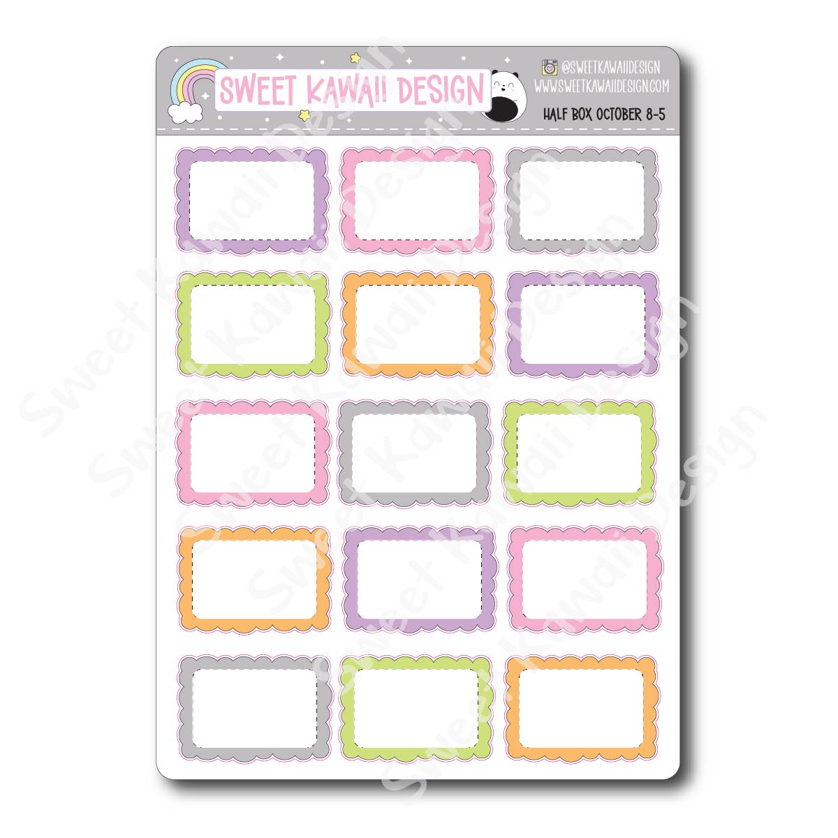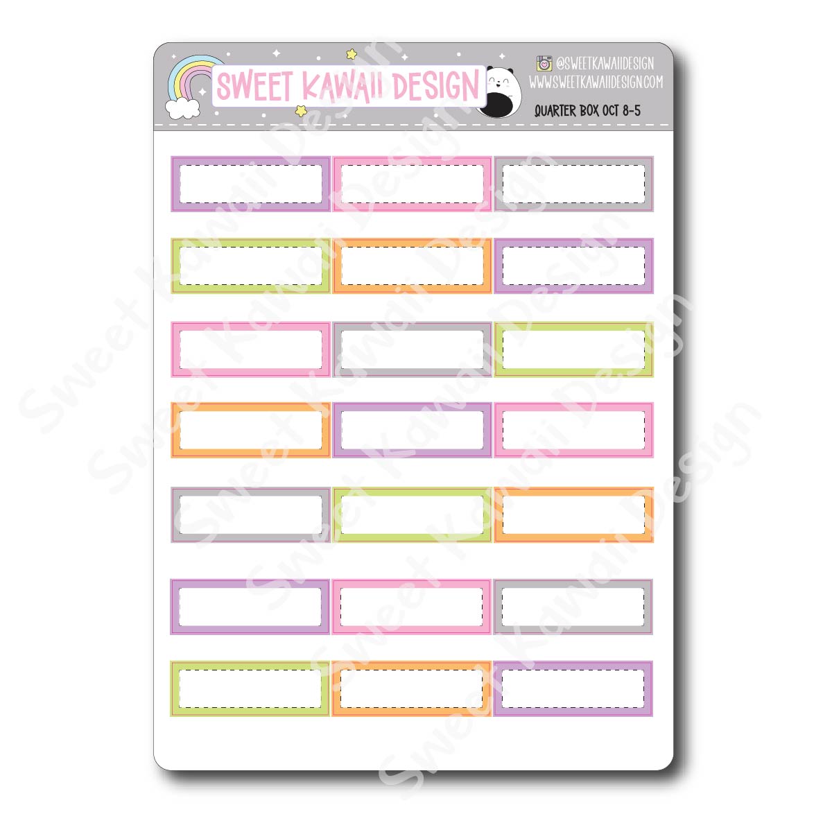 These stickers are modeled after our vertical kits. Full boxes stand at 1.9" tall. Quarter, Half and Full boxes are 1.5" wide.